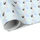 Den här pappra inslagningen i fantastisk innehåller en bild av en söt vit Stork med svarta fjädrar från svan på en blek blå bunt av filtar. Det finns en blå text på bunten som säger "Pojke". Det här är perfekten för att fira ett pojke.