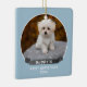 Cute Blue Puppy 1:a jul-Hund Foto Ornament. Anpassa den här söta prydnadsformen med ditt husdjurs namn, bild och år. Ornamenten är i grått, vitt och blått färg. Underbar julklapp för dig eller en gåva till din familj eller dina vänner.