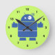 Cute Blue Robot Rund Klocka