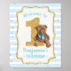 Cute Blue Strips Nalle 1:a födelsedagen Poster