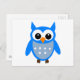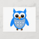 Cute Blue Tecknad Uggla Vykort