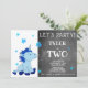 Cute Little Blue Baby Unicorn med Stars 2:a födelsedagsinbjudan // Inbjudan ditt barns vänner och familj med den här söta enmajsen födelsedagen inbjudan. Utformningen har en sitta blå encorn baby med blå stjärnor. Bakgrunden är en trendig-rityta och texten är vit färg. Födelsedagsfest inbjudan är underbart för en pojke eller en flicka som fyller två år. Du kan enkelt anpassa alla detaljer med ditt eget.