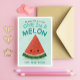 Klassrummet Valentine i en blå färgruta för skolvänner med söt, handillustrerad vattenmelon och skarpt budskap.