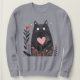 Den här damens kattälskarskjorta har en söt, svart leende Boho-blommigt vattenfärgskatt med ett stort rosa hjärta sitta i en vildblomsterträdgård.