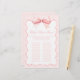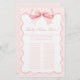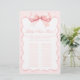 Upptäck vår charming- och elegant coquette-stil-duschkort för baby namn tävling. Varje kort innehåller hela alfabetet för fyllning i namn, med en söt rosa-buk, omgiven av en rosa polkadot mönster. Perfekt för att ge dig en lekfull beröring till babyduschfestligheterna. De här spelkorten blandar en nyfiken design med sofistikerad charm.