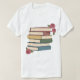 This charming t-shirt design features a cute, stylized pile of five books surrounded by blooming roses, beautifully rendered in a clean 2D vector illustration style. With soft contours, elegant floral details, and a crisp white background, the artwork blends bookish charm with romantic aesthetics.