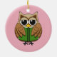 Cute Bookworm Uggla Reading Bok Tecknad Julgransprydnad Keramik