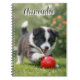 This notebook features a cute Border Collie puppy playing with a red ball. It's perfect for any dog lover! The artwork includes a script font name, "amanda," but both the text and image are templates, so you can easily customize them with your name, monogram, or other text. AI image prompt created by Susang6.