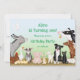 Ner på gården är alla djur upphetsade för din veckas födelsedag! Det här söta personligens födelsedagsfest inbjudan har en åsna, en gås, en höna och hennes chickar, en baby-get, en gris, en kanin, två lamm, en gräns-kollie, en svart katt och en ko och hennes kalv.