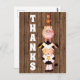 Tack för att du har ett vykort med en ko med gris på huvudet en tupp på gris huvud. De sätts mot en bakgrund av en lugg från ladugården. Lite grafik från Trina Walker på DigiScrapKits.com.