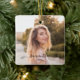 Skapa din egen personlig eller monogram kvadratisk keramisk ornament för helgdagarna. Anpassa färg eller storlek för det moderna söta lilla koquettehandskript för kalligrafi av stil, som är skrivet med handskrift, stil och storlekt efter behov. Ändra färgen för text och skugga så att den matchar bilden. Lägg till en andra bild på baksidan om du vill.