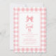 Cute Bow Pastel Rosa White Gingham Check Birthday Inbjudningar