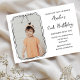 Cute Bow Simple Photo Black & White Barns födelsed Inbjudningar