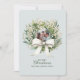 This elegant holiday card features a pale blue-gray background with a delicate winter wreath in soft watercolor style, accented by a charming white bow. A central photo template lets you showcase your favorite family memory, while the simple, minimalist greeting reads “Merry Christmas,” customizable if you wish, with your family name elegantly placed below. The back of the card offers space for a larger family photo, a personal message, and a signature, surrounded by additional winter greenery artwork. Clean, stylish, and sweet, this card is perfect for sharing warm holiday wishes with loved ones.