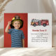 Cute Boy Firefighter Photo Kids 5th Birthday Party Inbjudningar