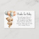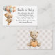 Ett sött "bokar for baby"-kort som du kan lägga till med dina inbjudningar till babyduschen. Varje gäst tar med bok till baby till duschen i stället för ett kort. Bok kan vara nytt eller användas försiktigt, skapar en trevlig början till byggnaden av lite bibliotek för baby. Den här designen har en bra pojke-nalle med en massa ballonger. På baksidan av kortet finns björnen sitta med en höstpumpa på en neutralt beige gingham-checkbakgrund.