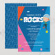 Din inbjudan till sten klättrar party! Den här inbjudan innehåller en pojke som skalar en färglös sten-vägg. Omvänd sida är en mönster-märke av sten som klättrar i husvagnarna.