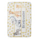 En baby-elefant, giraffe, zebra och lejon visas mot en söt färgad med djurtryck i mönster. Anpassa den här vackra barnbadmatten för en pojke eller en flicka med namn på ditt val.
