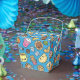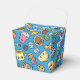 Favoritlåda med söta foto till frukost i toppen. Mönster-designen i roligt har spannmål, mjölk, bacon, ägg, donötter och så många andra söta matdoudlar.