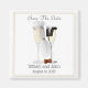 Spara datum magneter med vin glasögon klädda som en Bride och Groom. Lägg till briderna namn och bröllop. Enkel att hjälpa dina gäster i bröllop att komma ihåg din bröllop-dejt.