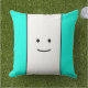 Cute Bright Aqua White Rand Little Smile Ansikte Kudde