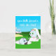 Med en tecknad brud golf boll som blickar uppsåtligt nedåt på sin gård - som stolt är sitta i hål - fångar den här scenen precis hur spännande och perfekt en "hål i en" verkligen känns. En dekorerad golfvagn i bröllop lägger till firande i bakgrunden. Ett bröllop-kort för roligt och lek för alla nygifta par som kärlek golf och som kan uppskatta lite humor med sin lycka hela tiden efter.