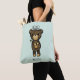 Anpassa det här till väskan med namn. Designad med en enkel illustration av en tecknad brunbjörn som håller en daisy av gulten. Hej skriven ovanför huvudet.