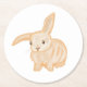 Cute Brown Bunny Rabbit - genomskinlig på vitt. Underlägg Papper Rund