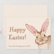 This Easter card features Destei's watercolor illustration of a brown bunny peeking from the corner on a beige background. The front includes two personalizable text areas, one currently reading "Happy Easter!" and the other ideal for adding a name. Perfect for spring and Easter, the design brings a festive woodland-inspired touch to your holiday greetings and makes every card feel personal and special.
