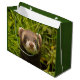En stor presentväska med ett bra foto med en liten brun iller som står upp i ett långt gräs. Cute som kan vara!