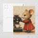 Cute Brown Mouse Makes Coffee Vykort