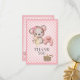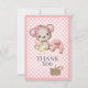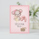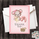 Skicka det här tackkortet till dina gäster. De kärlekar dem. Cute-brun nalle på en rosa och vit kontrollerad bakgrund med kanin, elefant och basket.
