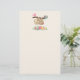 Stationär papper med en illustration av en söt brun lutning som hänger upp och ned. Den här lustiga lilla killen håller fast vid en gren som har en liten rosa fågel på ena sidan av gren och en udle-stil bukett med rosor på andra sidan. Under dem finns en arrangemang av färgstarka, handdragna blommor. Den här vackra slätten har också rosa rosiga kinder och tre söta små hjärtan på rumpan.
