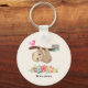 Nyckelkedja för personlig med en illustration av en söt brun lutning som hänger upp och ned. Den här lustiga lilla killen håller fast vid en gren som har en liten rosa fågel på ena sidan av gren och en udle-stil bukett med rosor på andra sidan. Under dem finns en arrangemang av färgstarka, handdragna blommor. Den här vackra slätten har också rosa rosiga kinder och tre söta små hjärtan på rumpan.