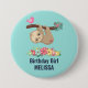 Cute Brown Sloth Hanging upp och ned på födelsedag Knapp