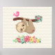 En poster med en illustration av en söt brun lutning som hänger upp och ned. Den här lustiga lilla killen håller fast vid en gren som har en liten rosa fågel på ena sidan av gren och en udle-stil bukett med rosor på andra sidan. Under dem finns en arrangemang av färgstarka, handdragna blommor. Den här vackra slätten har också rosa rosiga kinder och tre söta små hjärtan på rumpan.