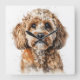 CUTE BROWN TAN COCKAPOO PUPPY HUND FYRKANTIG KLOCKA