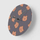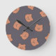 Cute Brown Teddy Bear Face Pattern Dark Blue Rund Klocka