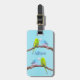 Den här bagagemärkningen har söta budgier i blått och grönt för alla fågelfåglar älskare - digital pantering på ljusblå bakgrund. Vackra och unika bagagetaggar för alla! Anpassningsbarnas bakgrund och text!