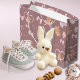 Presentera dina gåvor med en skön skönhet med vår "Cute Bunnies & Bows"-gåva. Denna vackert designade väska har ett mönster med udda knivar och stinkande kvistar, som återges i en lugnande palett med rosa, vitt och mjukt pastelleggplantoner. Idealisk för babyduschar, nyfödda presenter, födelsedagar och så vidare, är väskan ett mångsidigt och tilltalande sätt att omkullkasta presenter. Du kan välja mellan flera färger.