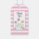 Tack för att du ger märkre med en rosa och vit stripe-bakgrund. Ett vitt ram med rosa gräns överst med texten inuti. Inuti ram finns en illustration av en mamma och baby-bunny som står tillsammans. Gultens daisy i bakgrunden. De vismliga fjärilarna flödar omkring.