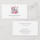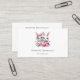 Business cardS with an illustration featuring 2 white furry bunnies sharing a big PINK heart. The girl bunny is wearing a cute bow on her head and heart-shaped glasses. The boy bunny is wearing an adorable little suit with a tie.