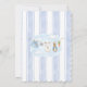 This cute baby bunny clothesline theme features a custom hand-painted frame of a crisp blue vertical stripe pattern accented with a lush greenery wreath, creating a clean, classic, and welcoming look. A sweet watercolor clothesline is strung across the center, proudly displaying tiny, adorable items, each featuring a cute bunny dressed in blue. The scene is completed with a darling blue bow holding a bunch of fresh carrots, and bright, cheerful daffodils, all rendered in a soft watercolor style. Easily add your own details and change the font style, size color and placement if you would like to.