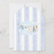 This cute baby bunny clothesline theme features a custom hand-painted frame of a crisp blue vertical stripe pattern accented with a lush greenery wreath, creating a clean, classic, and welcoming look. A sweet watercolor clothesline is strung across the center, proudly displaying tiny, adorable items, each featuring a cute bunny dressed in blue. The scene is completed with a darling blue bow holding a bunch of fresh carrots, and bright, cheerful daffodils, all rendered in a soft watercolor style. Easily add your own details and change the font style, size color and placement if you would like to.