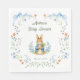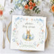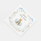 Set a lovely table to celebrate the upcoming arrival of your little one with this classic storybook-inspired baby shower paper napkin. Featuring a charming, watercolor style bunny holding a carrot, this design is framed by hand painted delicate blue ribbons, whimsical bows, and soft garden florals.