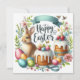 Cute Bunny Cake Eggs Illustration Påsk Julkort