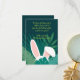 Say thank you in the sweetest way with this adorable bunny ears Easter thank you card. Featuring playful rabbit ears peeking out from lush green leaves on a deep teal background, this charming design adds a fun and festive touch to your Easter celebration.
