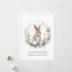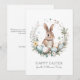 Send heartfelt Easter wishes with this beautifully designed flat greeting card, featuring a charming brown bunny nestled in an Easter-themed wreath of pastel-colored eggs, delicate florals, and lush greenery. Soft watercolor splashes add an artistic touch, enhancing the whimsical, springtime feel.