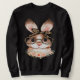 Cute Bunny Face Floral Leopard Print Glasses EAST Lång Ärmad Tröja