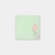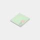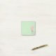 Små, fyrkantiga anteckningar med en vit kniv som håller en stor rosa ballong flytande uppe i luft. Ange på en ljust grönt bakgrund.